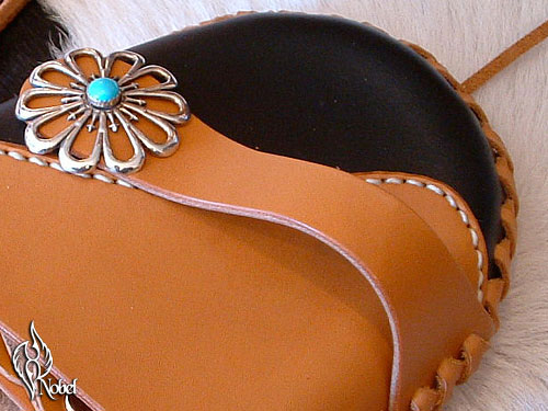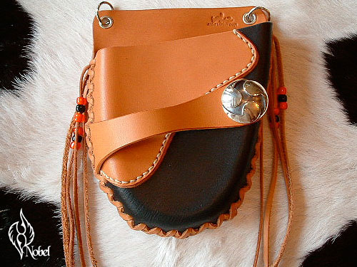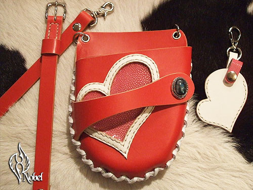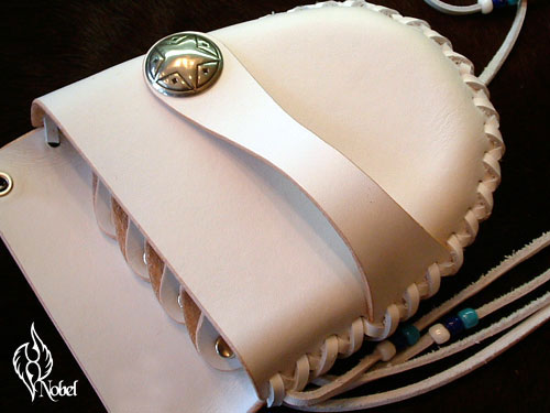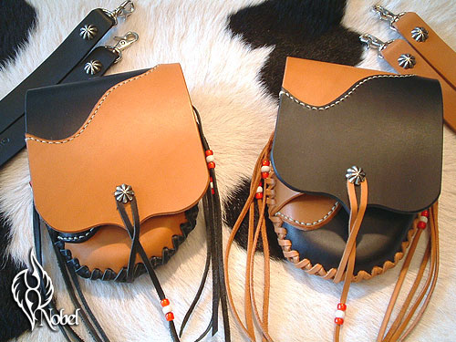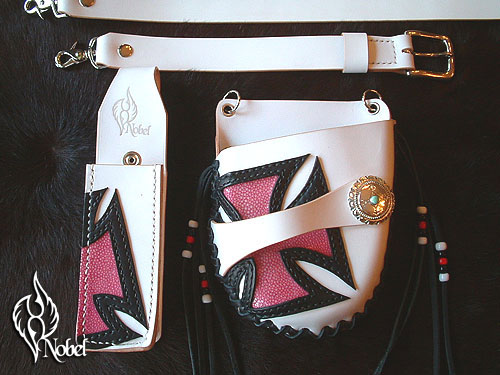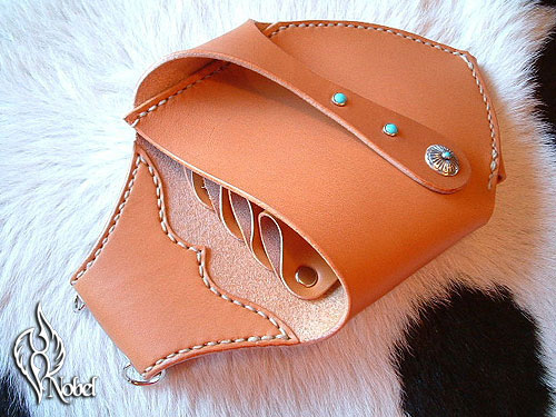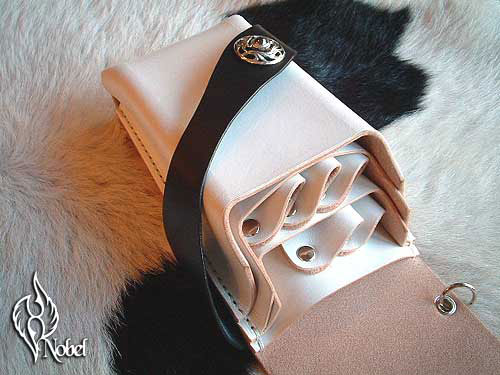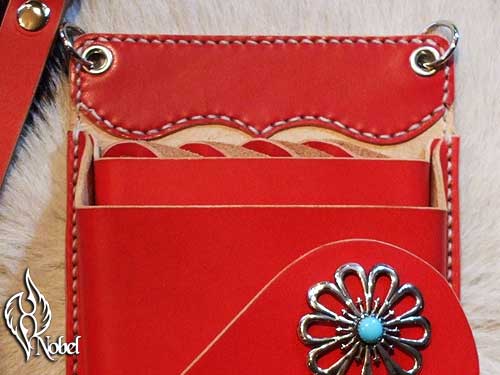 nlc-001の2色コンビモデル。2mm厚の牛革レースで周りを編み上げた可愛らしい個性派シザーケース。 |
