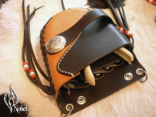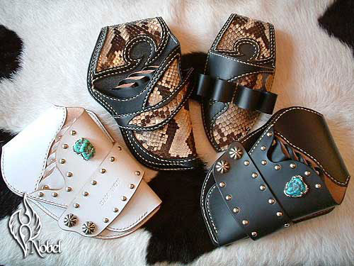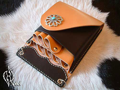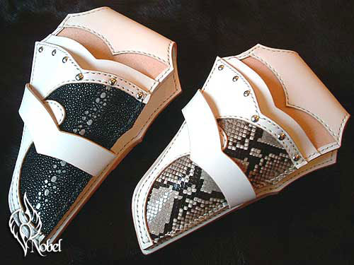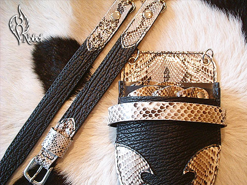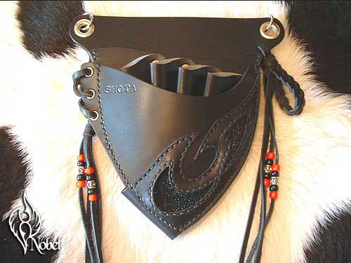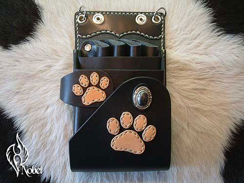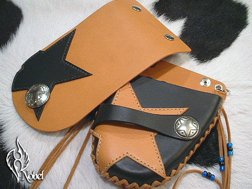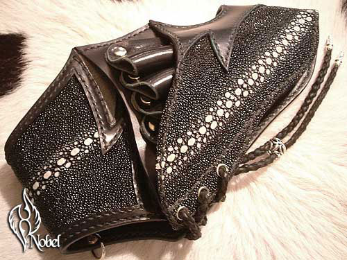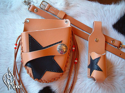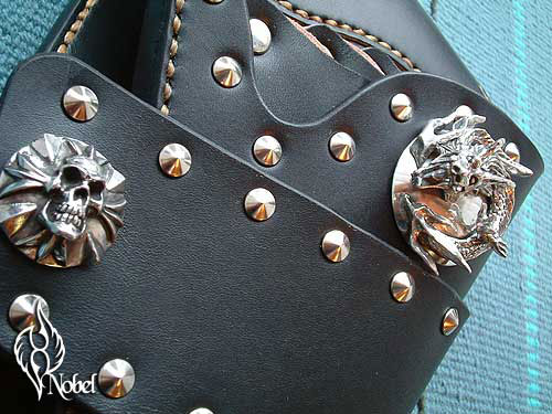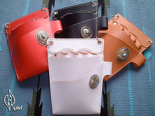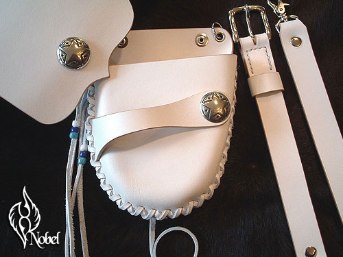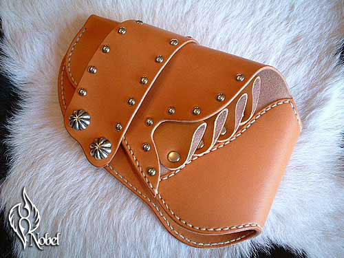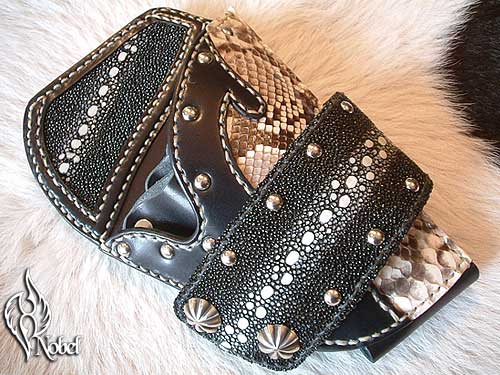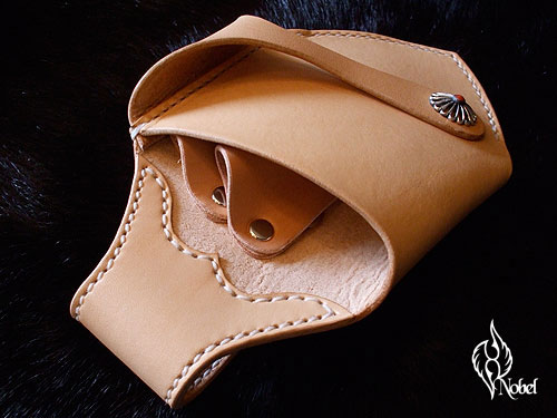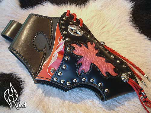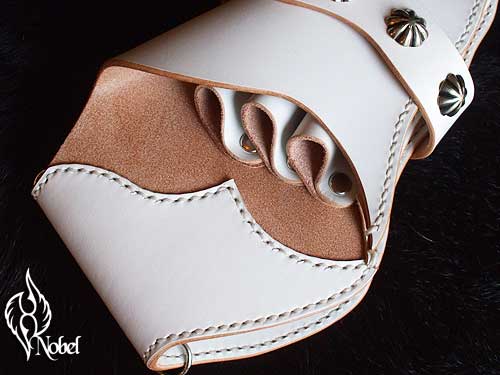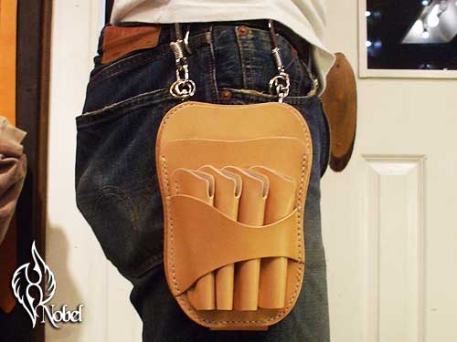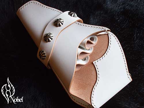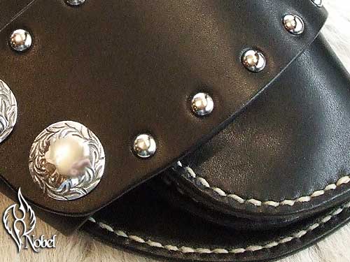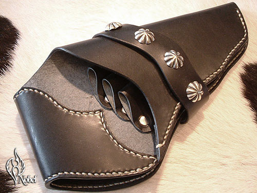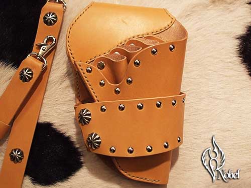 スタッズがポイントのガンホルスターシザーケース。カスタムメイドのベースに好評で、異素材の組み合わせもOK。 |