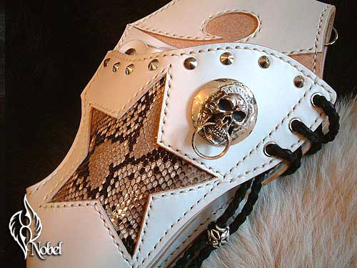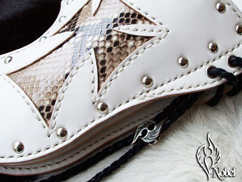 一番人気の最上級フラッグシップモデル。20個のスタッズ、ダイヤモンドパイソン、シルバーパーツ...と、迫力の豪華仕様。 |