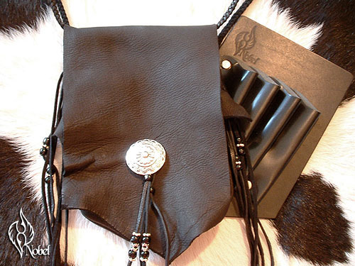 シザーケース兼メディスンバッグに。鹿革の柔らかい質感が魅力。ホルダーベースを外すとデイリーに使えるバッグに変身。 |